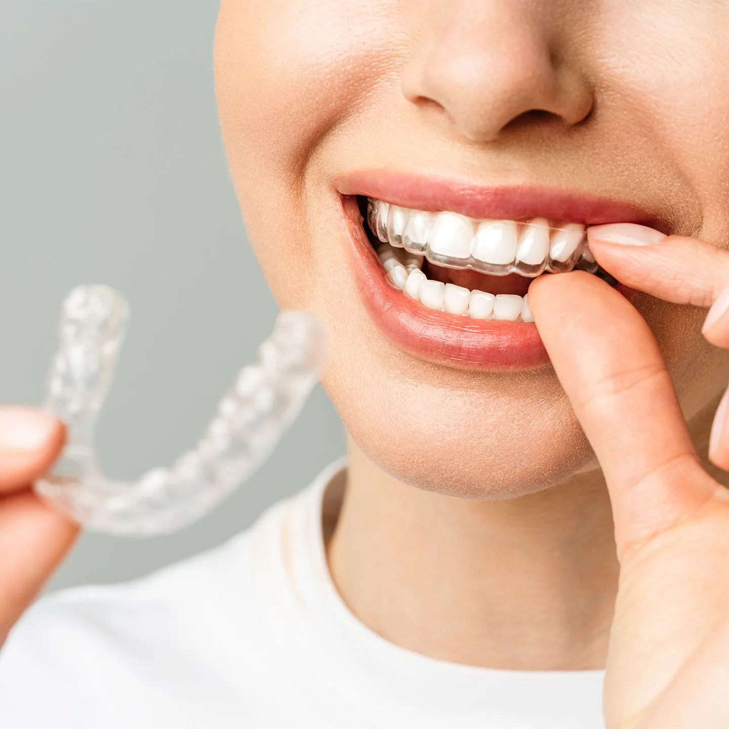 Die Kieferorthopädie mit unsichtbaren Alignern ist eine moderne, komfortable und ästhetische Lösung zur Korrektur von Zahnfehlstellungen. Die maßgefertigten durchsichtigen Aligner führen die Zähne nach und nach in die richtige Position, ohne dass herkömmliche feste Zahnspangen verwendet werden müssen. Sie sind abnehmbar, diskret und im täglichen Leben einfach zu handhaben, so dass Sie problemlos essen und die richtige Mundhygiene aufrechterhalten können. Diese Behandlung ist ideal für erwachsene und jugendliche Patienten, die ihr Lächeln effektiv, bequem und fast unmerklich verbessern möchten.